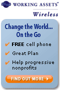 Speak up for a better world - get a FREE cell phone, a great plan, and FREE shipping from Working Assets. We donate 1% of your wireless charges to progressive causes at no extra cost to you. Since 1985, we have raised over $50 million for groups like Amnesty International, Greenpeace, and many more. Find out more now.