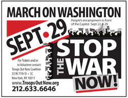 Sept. 22-29: Stop the War at Home and Abroad! Troops Out Now! Impeach Bush & Cheney for War Crimes! End All Occupations -- from Iraq to Palestine to Haiti to the Philippines!